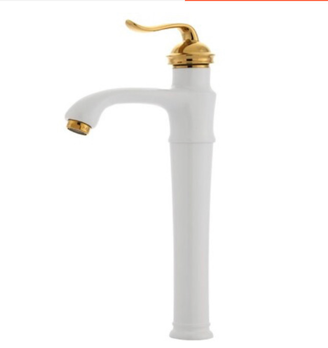 ست ۶ تکه شیرآلات سفیدطلایی مدل بامبو با شیر ظرفشویی شاوری فنری فانتزی اعلا و روشویی بلند