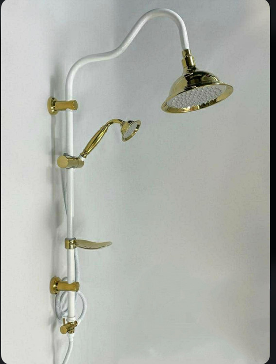 ست شیرالات مدل بامبو سفید طلایی با ظرفشویی فنری به همراه دوش حمام و شلنگ توالت *** دارای نشان استاندارد ملی ایران*** پوشش رنگ الکترواستاتیک کوره ای پوشش طلایی PVD *** کارتریج 40*** پرلاتور برنجی و کاهنده مصرف اب علم ظرفشویی برنجی *** تست توسط دستگاه اتوماتیک - ابعاد شیر ظرفشویی : 10x16x41 سانتی متر و وزن ۲ کیلوگرم به همراه شلنگ اتصال به شیر پیسوال سایز 3/8 - ابعاد شیر روشویی : 38x10x18 سانتی متر و وزن 1200گرم به همراه شلنگ اتصال به شیر پیسوال سایز 3/8 - ابعاد شیر توالت : 13x15x18 سانتی متر و وزن 1200 گرم - ابعاد شیر حمام : 15x18x20 سانتی متر و وزن 1700 گرم به همراه شلنگ توالت سفید طلایی -- مشخصات دوش حمام : پوشش رنگ الکترواستاتیک کوره ای لوله استیل کوهانی پوشش طلایی PVD مشخص به سردوش و گوشی سیار تک حالته پلاستیکی شیپوری جا صابونی پلاستیک پایه های پلاستیکی شلنگ استیل و برنجی