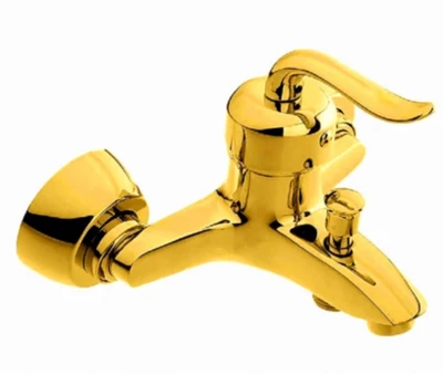ست شیر حمام طلایی قاجاری بامبو با علم دوش استیل طلایی دوکاره