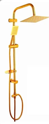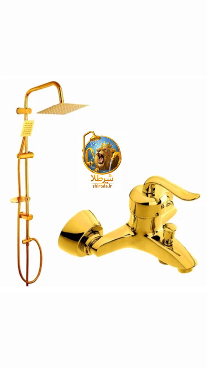 ست شیر حمام قاجاری بامبو طلایی با علم دوش دوکاره استیل مربعی طلایی درجه یک