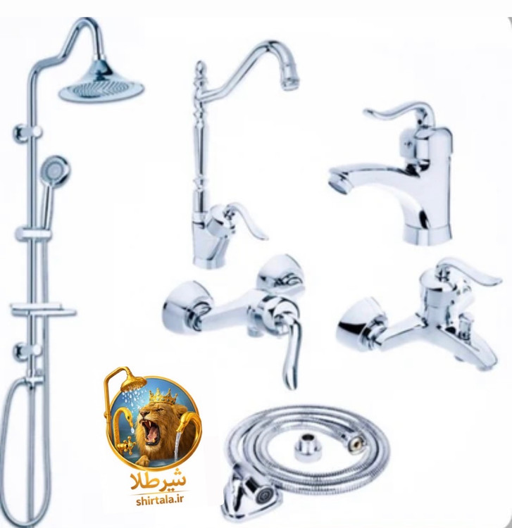 ست ۶ عددی شیرآلات مدل قاجاری با علم دوش شیپوری دوکاره استیل