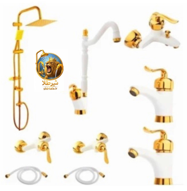 مجموعه ست ۹ تکه شیرالات سفیدطلایی مدل قاجاری بامبو با ارسال فوری از تهران به سراسر کشور