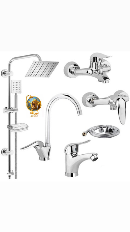 ست کامل شیرآلات پلاس سارینا مدل اکونومی ۶ تکه با علم دوش و شلنگ توالت *طرح قهرمان*