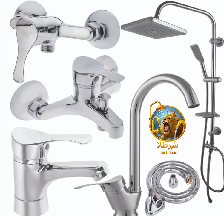 ست ۶ تکه شیرآلات مدل لاله پلاس +علم‌ دوش رسوبگیر اتوماتیک+ شلنگ توالت