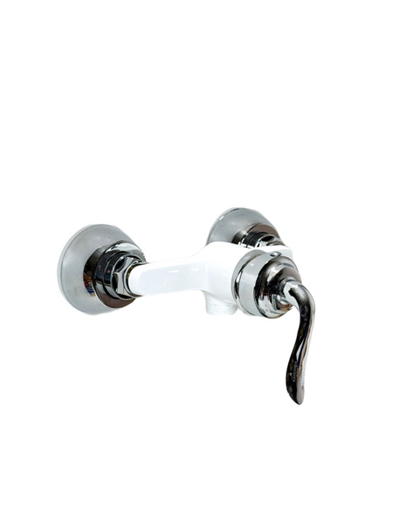 ست ۶ تکه شیرآلات قاجاری بامبو سفیدکروم و علم دوش شیپوری و شلنگ توالت